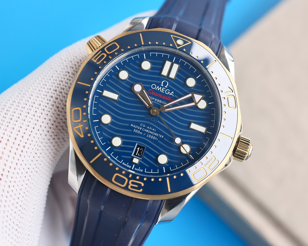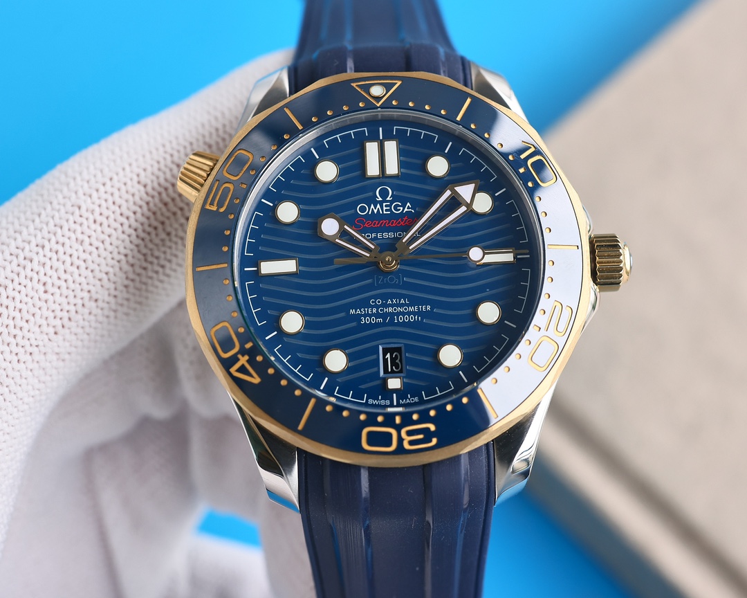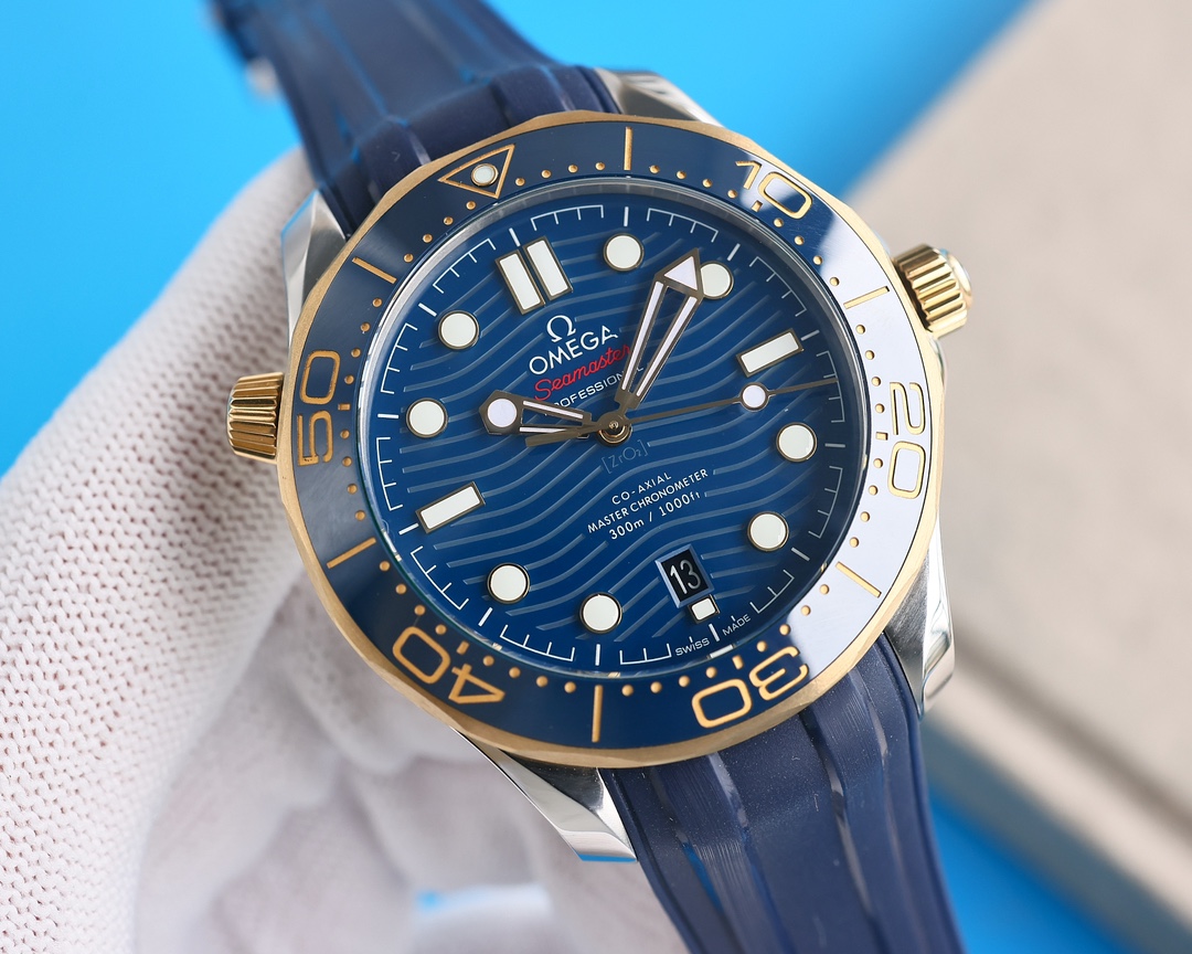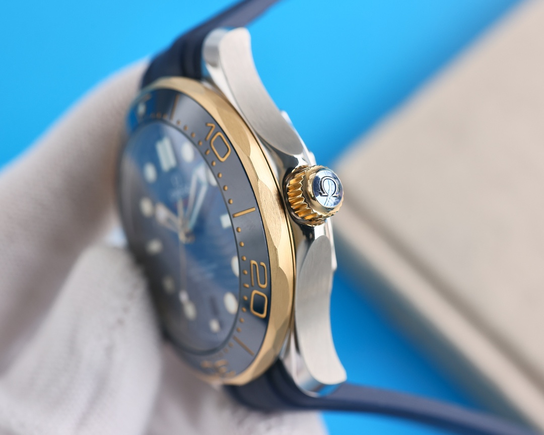 • Omega Seamaster Diver 300m Yellow Gold & Steel Blue Dial 42mm Ref. 210.22.42.20.03.001