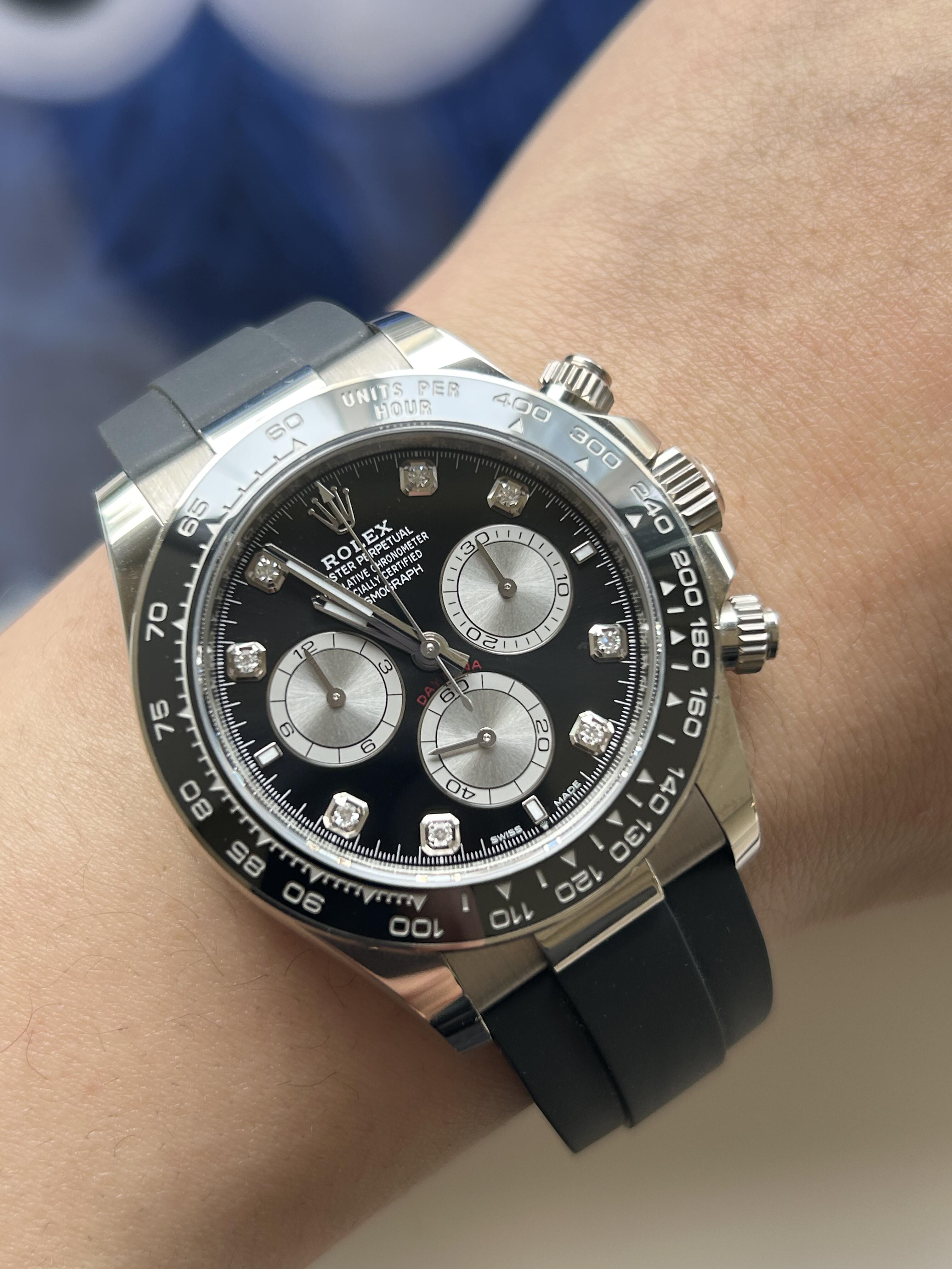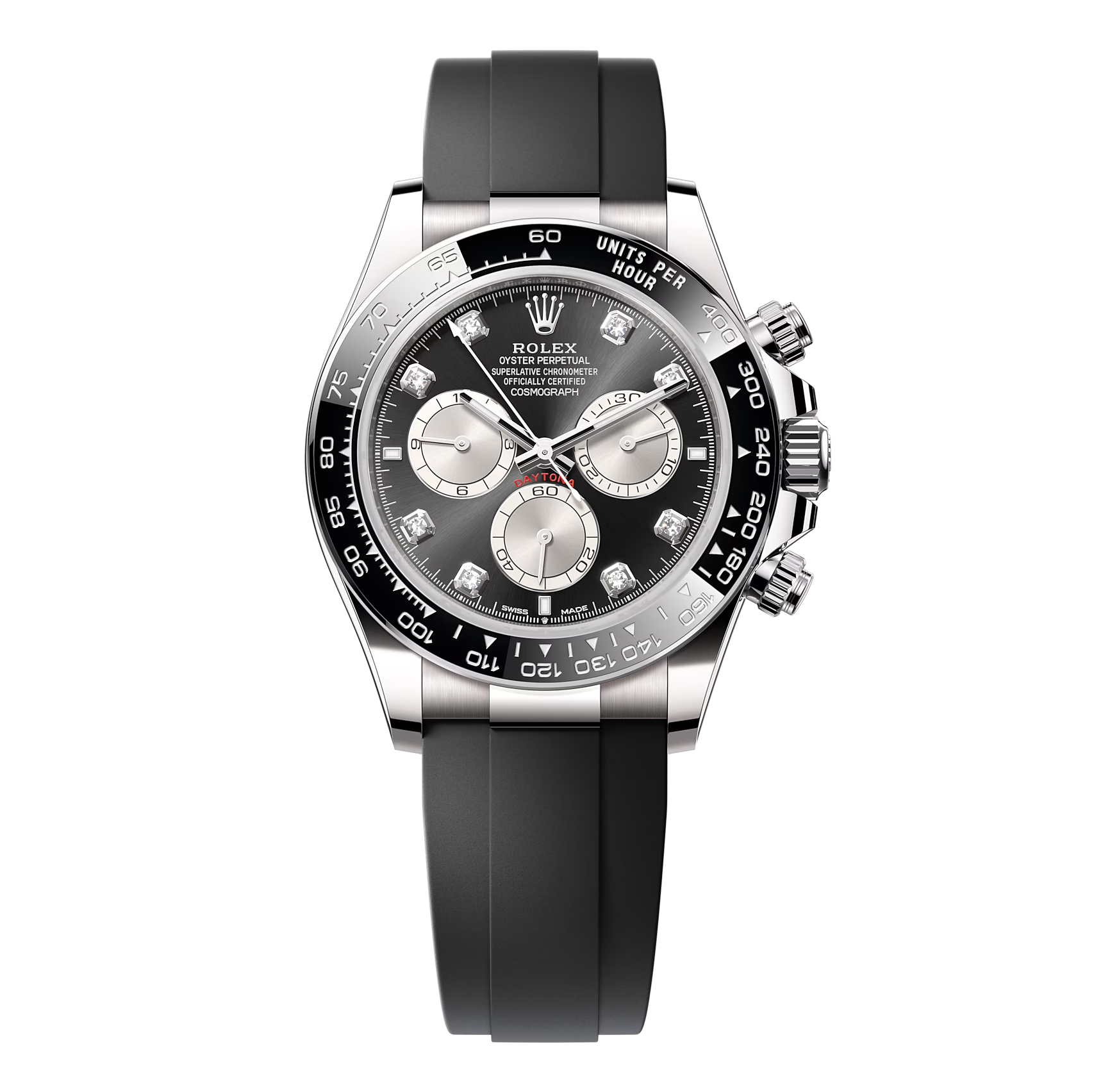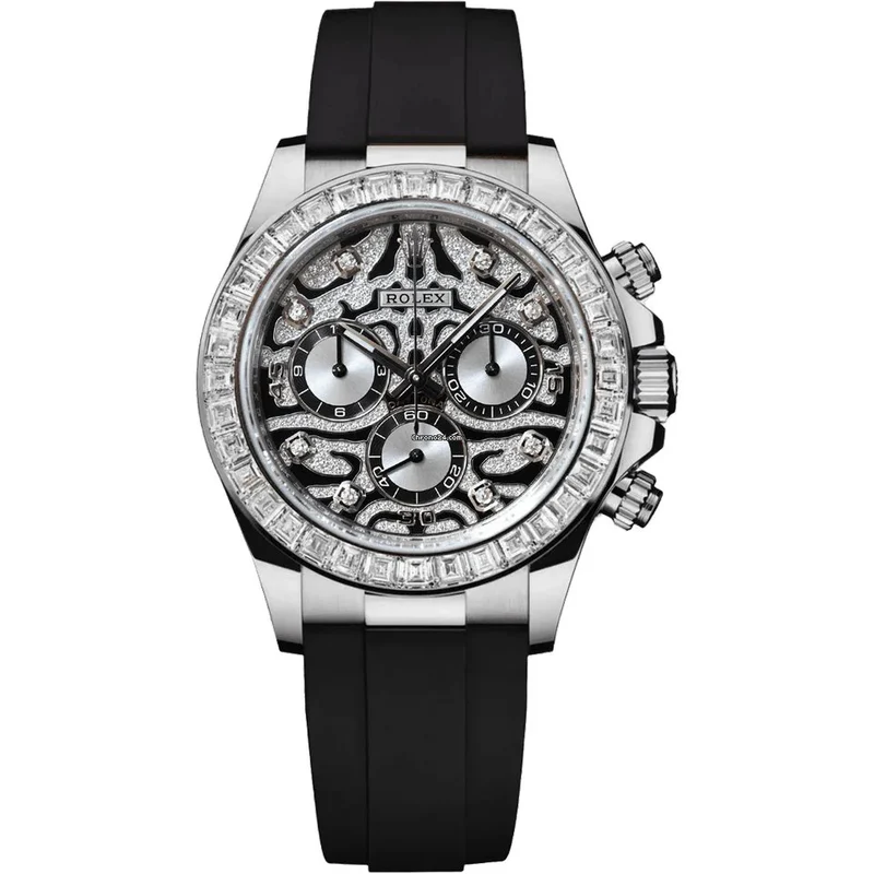 Swiss movement-Rolex Daytona White Gold Black Dial Oysterflex Strap 116519LN-0025