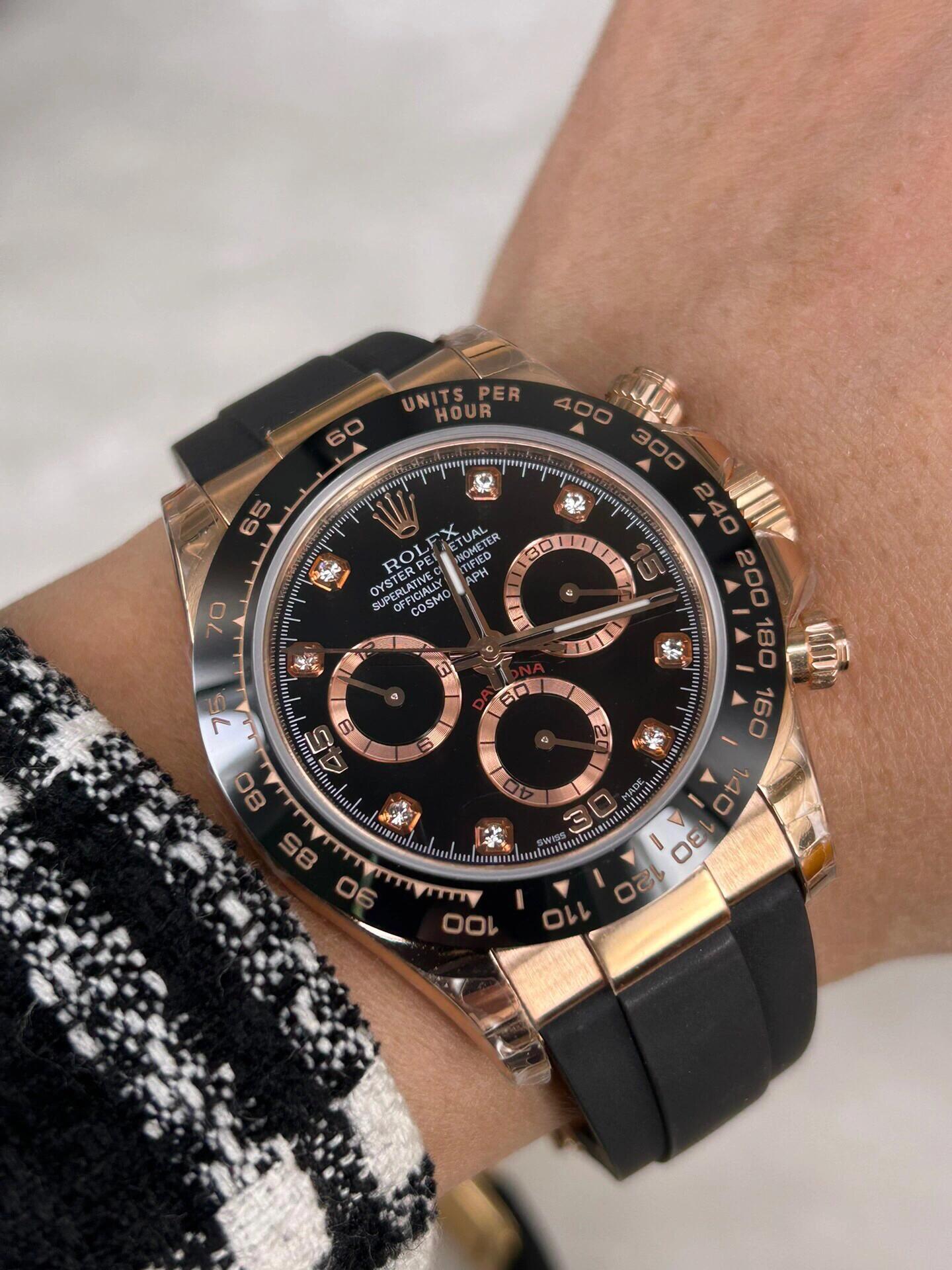 Swiss movement-Rolex Cosmograph Daytona Everose Gold Oysterflex M116515LN-0041